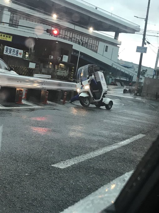 西日本を襲う 台風21号 で宅配ピザドライバーが吹き飛ばされる 頼む