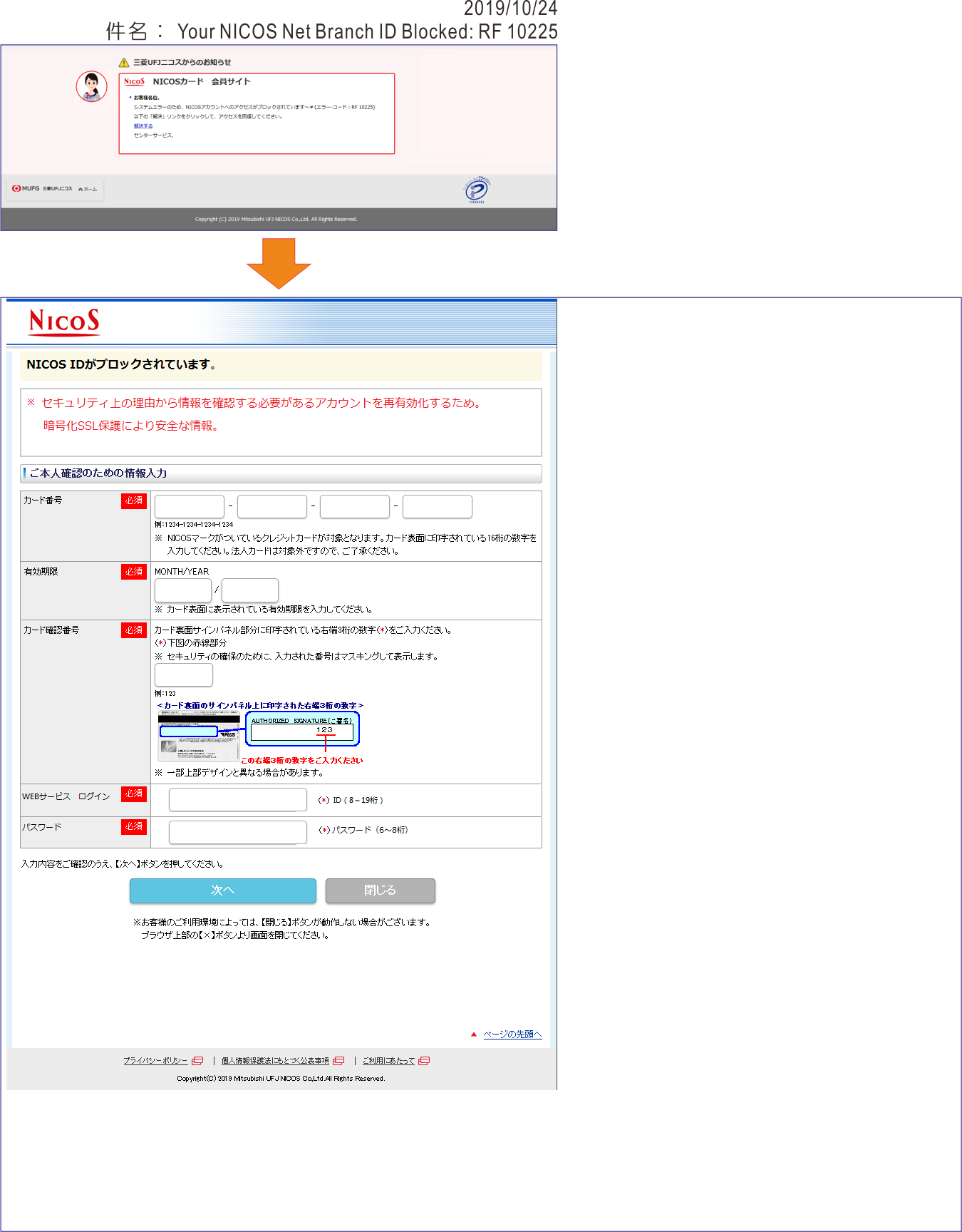迷惑メール 三菱ufj銀行mufg Bankお支払い方法を更新してください