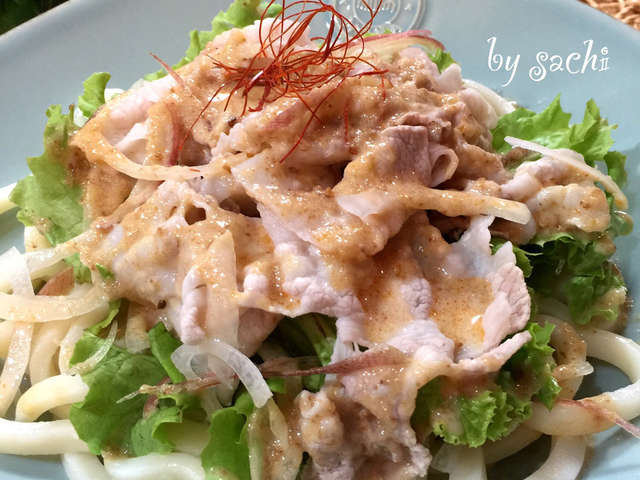ピリ辛ゴマだれ 冷しゃぶサラダうどん レシピ 作り方 By Sachi825 クックパッド