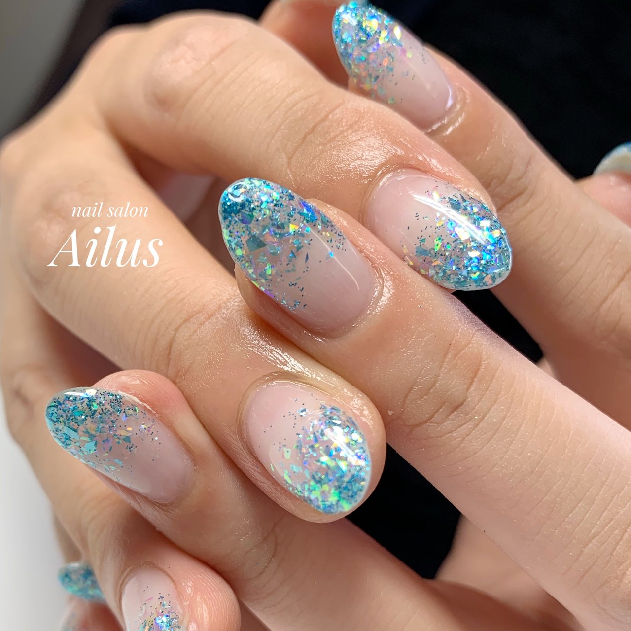 暖色好みのolさん 夏の爽やか寒色系ブルーのシンプルラメグラデーションネイル 成増3分のネイル フェイシャルサロンcenbless センブレス