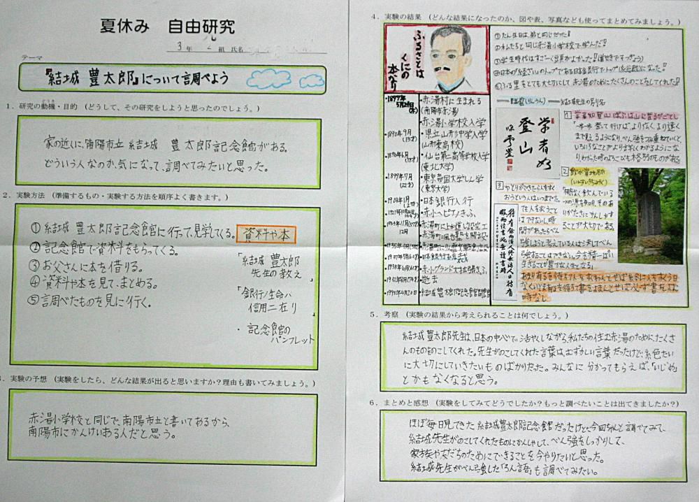 夏真っ盛り 小学校の自由研究で結城豊太郎先生 南陽市赤湯 結城