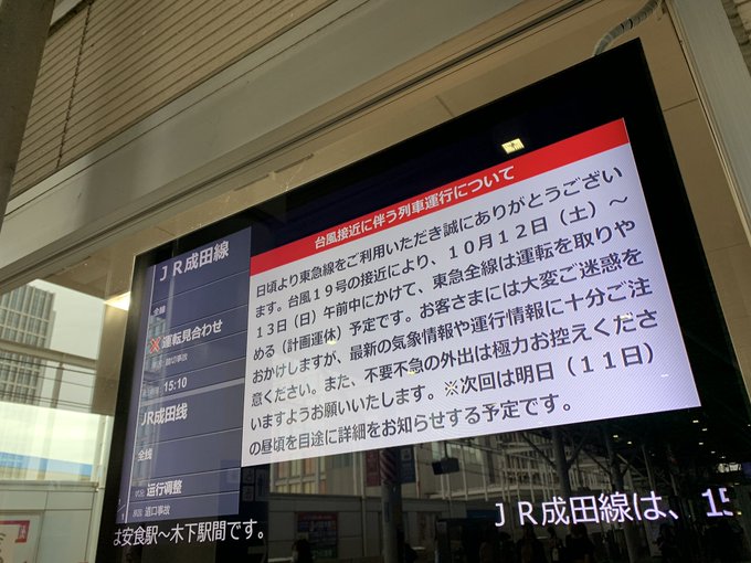都営線 主要私鉄 台風19号に伴う運行情報まとめ 10月12日お昼前後